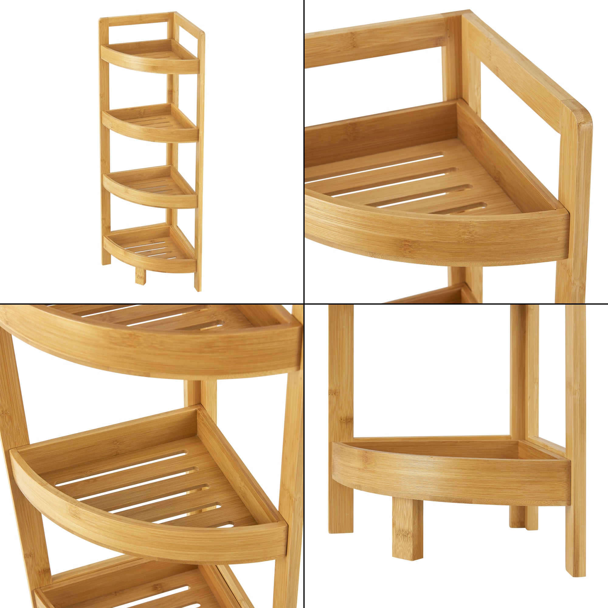 A bambuszból készült praktikus polc maximálisan helytakarékos, és tökéletes például a konyhába vagy a fürdőszobába. 4 polccal rendelkezik szinte bármely fürdőszobai eszköz vagy konyhai cikk tárolására.