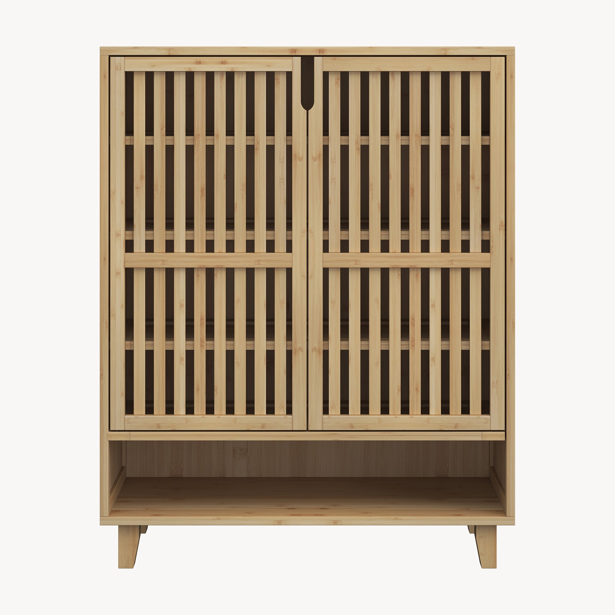 A szekrény belsejében négy polc, alul pedig egy nyitott tárolórekesz található, ez utóbbi extra tárolóhelyet nyújt a gyakran használt cipők számára. Így a sportcipők, magassarkúk vagy szandálok áttekinthetően és helytakarékosan rendszerezhetők.