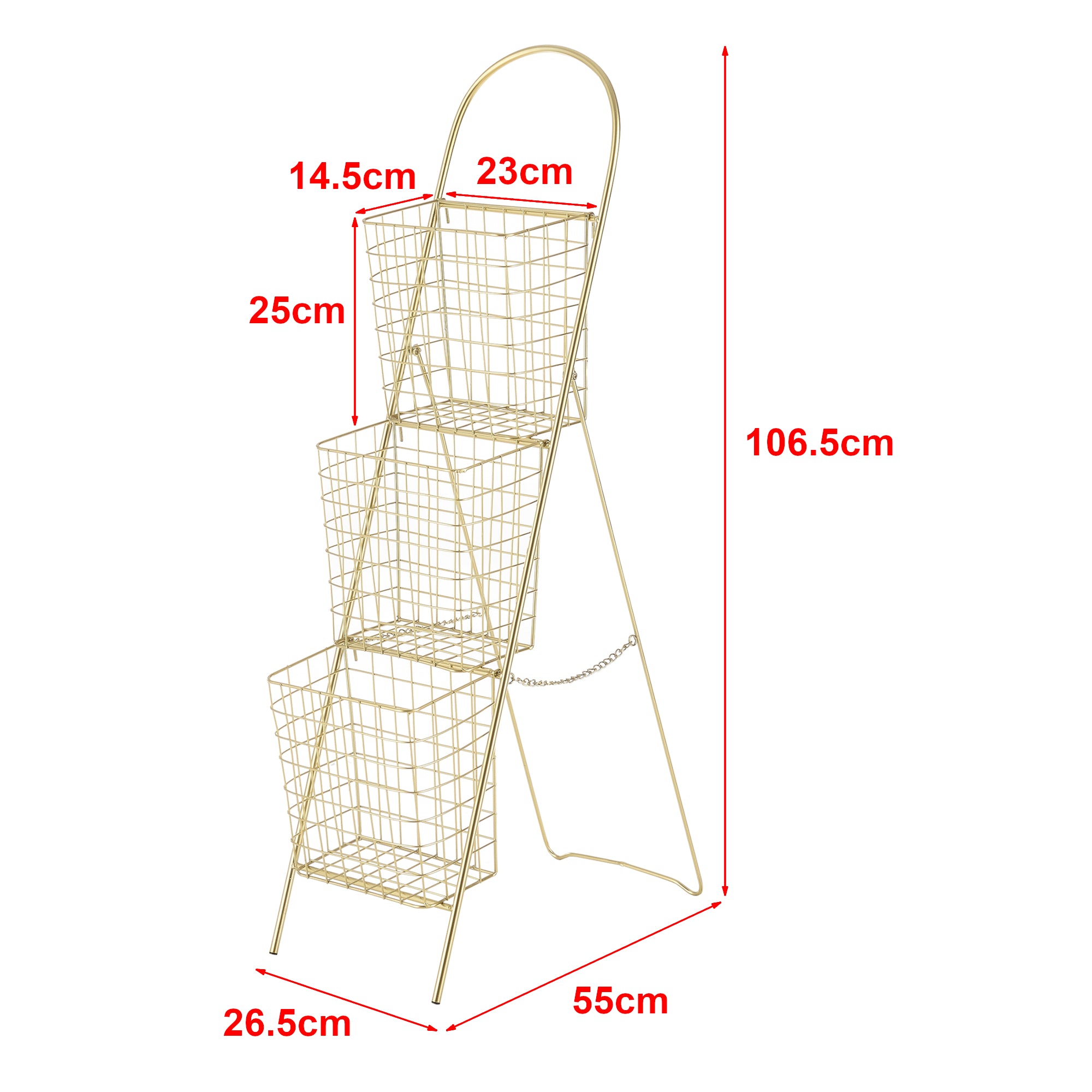 Ez a fémkosarakkal ellátott díszlétra megnyerő külsejével és praktikus kialakításával igazi szemet gyönyörködtető látványt nyújt a lakótérben. A három kivehető fémkosár tárolóhelyet biztosít apróbb használati tárgyak számára.