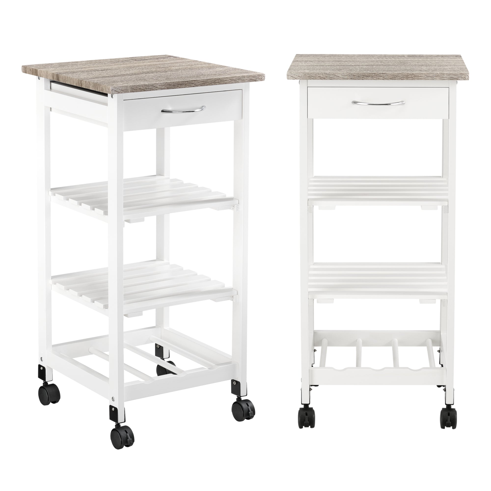 A legpraktikusabb, legsokoldalúbban használható otthoni konyhai eszközök egyike ez a görgőkön gurítható polc. Mindegy, hogy a konyhában, vagy a nappaliban használja, garantáltan segítségére lesz a tárolásban. Mivel a zsúrkocsi könnyen mozgatható, tálalóként is megállja a helyét.